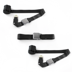 Ford Falcon 1964 - 1965 Airplane 2pt Black Retractable Bench Seat Belt Kit - 3 Belts