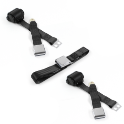 Chevy FS Blazer 1973 - 1991 Airplane 2pt Black Retractable Bench Seat Belt Kit - 3 Belts