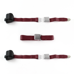 VW Karmann Ghia Airplane 2pt Burgandy Retractable Bench Seat Belt Kit - 3 Belts