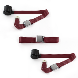 Ford Bronco 1966 - 1977 Airplane 2pt Burgandy Retractable Bench Seat Belt Kit - 3 Belts