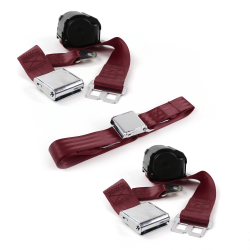 Chevy Truck 1941 - 1946 Airplane 2pt Burgandy Retractable Bench Seat Belt Kit - 3 Belts