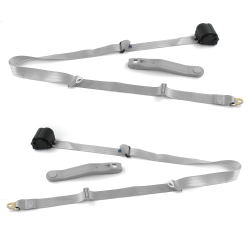 Jeep Jeepster 1966 - 1973 Standard 3pt Gray/Grey Retractable Bucket Seat Belt Kit - 2 Belts