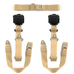 Chevy Bel Air 1949 - 1954 Standard 3pt Tan Retractable Bench Seat Belt Kit - 3 Belts