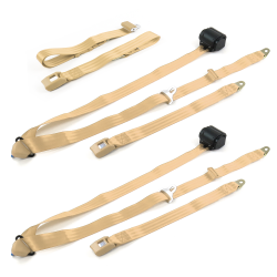 Chevy Impala 1958 Standard 3pt Tan Retractable Bench Seat Belt Kit - 3 Belts