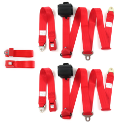 Chevy Impala 1971 - 1976 Standard 3pt Red Retractable Bench Seat Belt Kit - 3 Belts