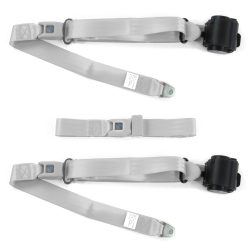 Chevy Impala 1961 - 1964 Standard 3pt Gray/Grey Retractable Bench Seat Belt Kit - 3 Belts