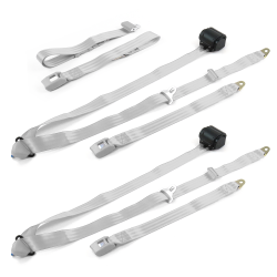 Chevy II 1966-1967 Standard 3pt Gray/Grey Retractable Bench Seat Belt Kit - 3 Belts