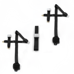 Ford Van 1968-1974 Airplane 3pt Black Retractable Bench Seat Belt Kit - 3 Belts