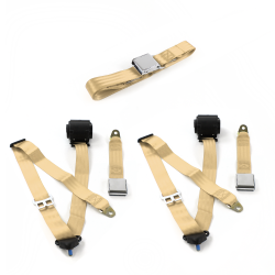Ford Bronco 1980 - 1996 Airplane 3pt Tan Retractable Bench Seat Belt Kit - 3 Belts