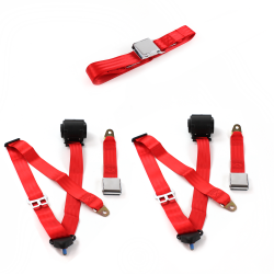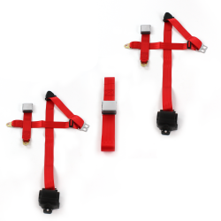 Dodge Challenger 1970 - 1974 Airplane 3pt Red Retractable Bench Seat Belt Kit - 3 Belts