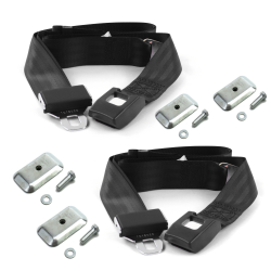 Ford Bronco 1966 - 1977 Standard 2pt Black Lap Bucket Seat Belt Kit w/ Bracketry - 2 Belts