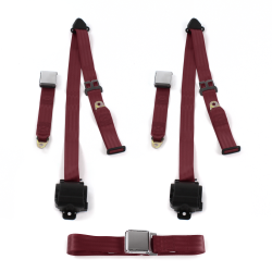 VW Karmann Ghia Airplane 3pt Burgandy Retractable Bench Seat Belt Kit - 3 Belts