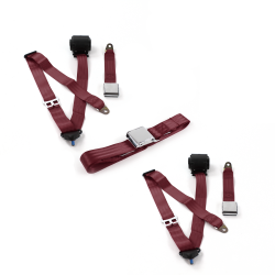 Jeep Wrangler 1987 - 1996 Airplane 3pt Burgandy Retractable Bench Seat Belt Kit - 3 Belts