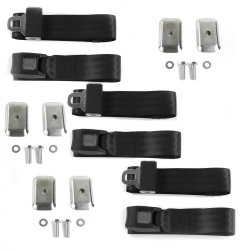 Ford Bronco 1980 - 1996 Standard 2pt Black Lap Bench Seat Belt Kit w/ Bracketry - 3 Belts