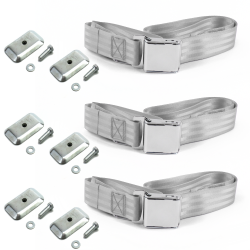 Ford Fairlane 1962 - 1965 Airplane 2pt Gray/Grey Lap Bench Seat Belt Kit w/ Bracketry - 3 Belts