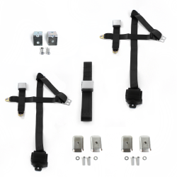 Jeep Wrangler/TJ 1997 - 2006 Airplane 3pt Black Retractable Bench Seat Belt Kit w/ Bracketry - 3 Belts