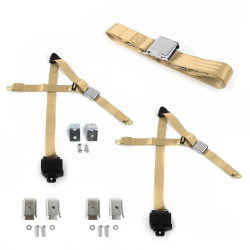 Ford Bronco 1980 - 1996 Airplane 3pt Tan Retractable Bench Seat Belt Kit w/ Bracketry - 3 Belts