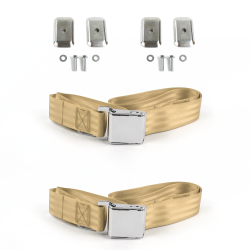 Chevy Truck S10 1981 - 1993 Airplane 2pt Tan Lap Bucket Seat Belt Kit w/ Bracketry - 2 Belts