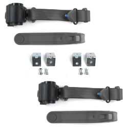 Ford Mustang 1967 - 1970 Standard 3pt Charcoal Retractable Bucket Seat Belt Kit w/ Bracketry - 2 Belts