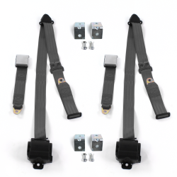 Ford Fairlane 1962 - 1965 Airplane 3pt Charcoal Retractable Bucket Seat Belt Kit w/ Bracketry - 2 Belts