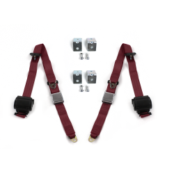 Ford Mustang 1979 - 1993v Airplane 3pt Burgandy Retractable Bucket Seat Belt Kit w/ Bracketry - 2 Belts