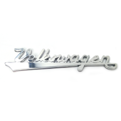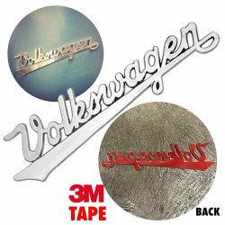 Chrome Volkswagen Emblem Script for Deck Lids, Hoods, Doors. Fits VW Bug, Beatle, Karmann Ghia, Bus, Thing, Notchback, Single Cab, Type 1 Type 2 Type 3 Type 4 Jetta, GTI, EuroVan, Transporter & More