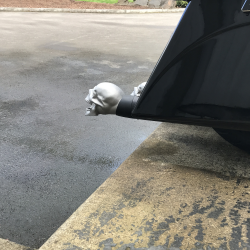 Our skull exhaust cover is bad to the bone! Great as a truck or hot rod accessory, even better on your Harley! Made from cast aluminum. Direct fit over a stock 2.5 inch automotive exhaust pipe. Will not restrict air flow. Includes mounting hardware.