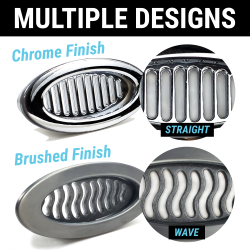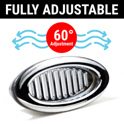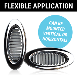 Add the elegant look and feel of chromed billet aluminum to your dash, hood, or body panels with Zirgo's easy to install air conditioning A/C and heater vents. These eye-catching oval A/C vents are precision machined with high quality polished aluminum bezels. The slotted multi-directional louvers offer the convenience of up to 60 degrees of air flow adjustment. Each vent also includes brackets and mounting hardware for quick and easy installation.