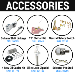 For use with GM 4L60E, 4L65E, 4L80E, 4L85E, 6L45, 6L50, 6L80, 6L90, T56, Tremec TKO, M21/M22, SM420, SM465, NV3500, NV4500, 5L40, 5L50, (Additionally Traditional Powergluide, TH400 & 700R4 Automatic Transmissions & Muncie, Saginaw & Borg-Warner Manual Transmissions)
