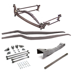Vintage's three stages of kits allows you to pick the perfect solid axle package from basic, to Super Deluxe that include all of the parts you need for installation all in one box! Even better we have paired these kits with with a set of stamped frame rails, front crossmember, rear triangulated four link, rear crossmember and a sprng mount u-bolt kit to get you closer to the end. To customize your kit Vintage offers upgrade codes that allow you to custom taylor your kit to make your ride one of a kind.