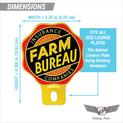 Farm Bureau Insurance Companies License Plate Topper Badge Tin Metal Stamped Vintage, Car, Truck, Motorcycle, Amaricana, Retro, Accessory, Style, Antique, Easy Installation with Adjustable Height Slot