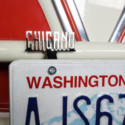 Do you appreciate vintage, classic car accessories? This chrome license plate topper is for you!
