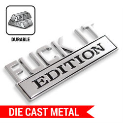 3D Metal Fuck It Edition Fender Tailgate Emblem Truck Car Auto Badge Decal Die Cast Chrome Double Sided 3M Tape Sticker for Auto Door Hood Trunk Bumper - Compatible w/ Ford Chevy Toyota Freightliner
