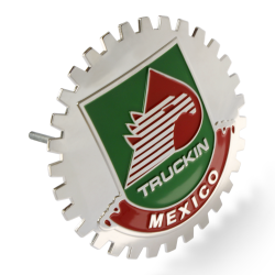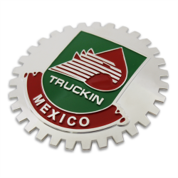 Autoloc Chrome Truckin Mexico Grill Badge Emblem Medallion Red White Green Metal Decal Flag Banner Shield Front Rear Grille Hood Vent Mount for Car Truck Van SUV Compatible w/ Ford Chevy Dodge Pontiac