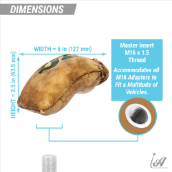 All American Shifter Brody Knob Adapters feature a 16mm x 1.5 input shaft, enabling you to select from a huge selection of knobs. This makes it convenient to replace or change out your knob easily. Additionally, select knobs offer personalization options.