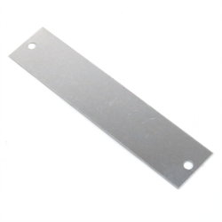 Measures 3.5" wide x 0.75" tall, with a 0.5mm thickness and 3.5mm rivet holes on each side for easy mounting.