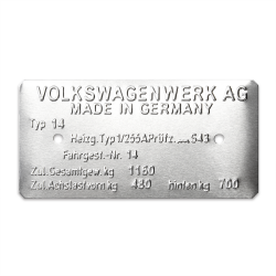 Type 14 Vin Data Information Plate Compatible with Volkswagen VW Karmann Ghia sedan or convertible standard and Lowlight | Made in Germany Stamped | OEM detailing