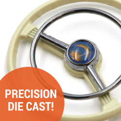 A perfect 1972-80 VW Standard 4 Spoke steering wheel keychain! These keychains are perfect replica of the VW aircooled 1972-80 VW Standard 4 Spoke steering wheels from back in the day. Each Volkswagen steering wheel keychain offer identical scale details just like the factory volkswagan steering wheel. Percision cast from ally and then hand painted and assembled with a high quality chrome keychain & ring. You can customize your keychain by installing one of the 9 interchange horn buttons decals. These VW keychains are available in factory Black and limited edition chrome. Makes the perfect gift for your Volkwsgaen aircooled fan!