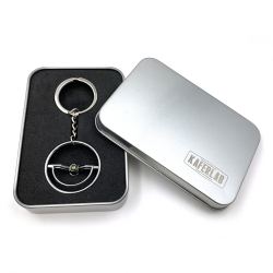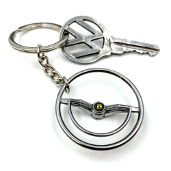 This chrome version is part of a limited edition first release of just 500 units. Each one includes a nice gift box and automatic registration of authenticity. Each Keychain Style available in 9 different vintage aircooled Volkswagen steering wheels designs!