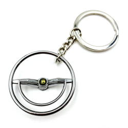 1960-63 VW Beetle Chrome Dished Steering Wheel Keychain - Gold Wolfsburg Button