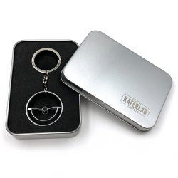 This chrome version is part of a limited edition first release of just 500 units. Each one includes a nice gift box and automatic registration of authenticity. Each Keychain Style available in 9 different vintage aircooled Volkswagen steering wheels designs!