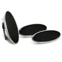 This Pedal Pad Kit includes 3 matching chromed billet pedals: - 1x Oval Floor Mount Gas Pedal - 2x Small Oval Brake/Clutch Pedal (horizontal or vertical mount) Am...