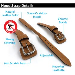 The unique adjustable design insures a perfect fit, while looking great! Unlike traditional leather straps that dry out and crack, this RallyStrap is made from high quality NeverRot leatherette that will never crack, fade, or dry out. Each strap includes chrome plated buckles, double stitch construction, & heavy duty hardware.