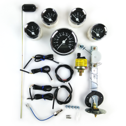 Aurora 5-Gauge Sets use the latest technology to allow you to monitor your vehicle in style. Aurora 5-Gauge Kits include speedometer, oil pressure, water temperature, fuel level, and volt gauges. Aurora gauges are available in Metric and Imperial units of measure, making them ideal for all applications around the world. Advanced LED illumination allows for precise, even lighting levels on the gauge face while reducing glare. All Aurora Gauges include interchangeable trim rings, needles, and gauge faces - allowing you to change the look of your gauges before or after installation. Includes fuel, pressure & temperature sensors and backed by a Limited Lifetime Warranty.