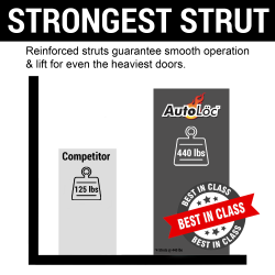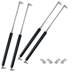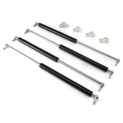 AutoLöc's 2 Door Heavy Duty Lambo Door Hinge Gas Strut Lift Assist kit includes some of the strongest door support shocks on the market. Kit comes with (4) 220 lb. Lift 17" sealed gas charged struts with All Metal ball stud joints and mounting bracket hardware. 2 gas struts and 2 ball stud angle mounting brackets per door.