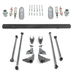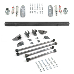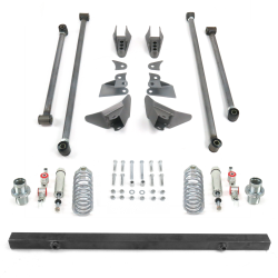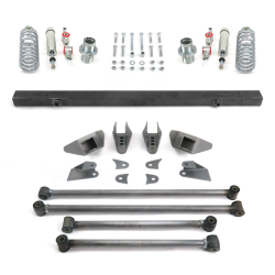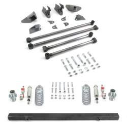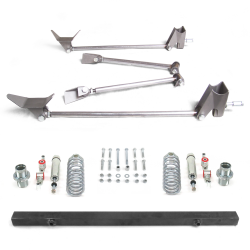 Installing a four link kit on your 46 1946 Ford Coupe - Club, Standard, Deluxe, Super just got easy with this deluxe kit that includes the four link bars, brackets, upper shock mount, coilover shocks, and springs! This Triangulated 4-Link Kit is stronger than the rest, with the same .156 wall tubing that is the standard in drag racing applications.