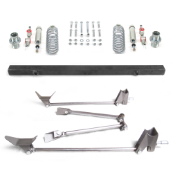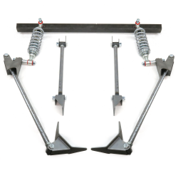 Triangulated Four Link Kit with Coilover Shocks And Weld In Upper Crossmember Kit for 46 1946 Ford Coupe - Club, Standard, Deluxe, Super. Available with different spring weights for heavier vehicles.