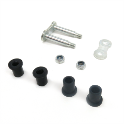 Don’t get “shackled” by the competition’s cheap and inferior poor quality materials! Helix™ spring shackle kits are far superior to OEM and are attractive as well with their vintage style gold Iridite finish. These spring shackles will lend a finished, professional appearance to your classic Ford along with strength and lasting durability. Forged from hardened steel, these Helix™ shackles for 1.75” spring width are not made from “pop” metal like the poseurs who manufacture cheap copies and will outlast the OEM shackles and the competition alike. Kit contains 1 durable lightweight steel shackle and end plate, 4 long-wear nylon bushings, and 3 nylon locking nuts.