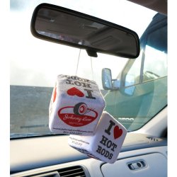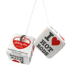 Fuzzy Dice 3 inch "I Love Hot Rods" Rear View Mirror Hanger