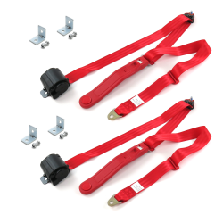 Ford Mustang 1964 - 1966 Standard 3pt Red Retractable Bucket Seat Belt Kit w/ Bracketry - 2 Belts